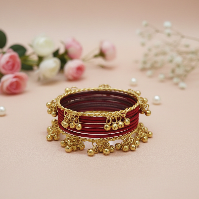 Wine color Bridal Chuda with Golden Borders – Premium Wedding Set of 2