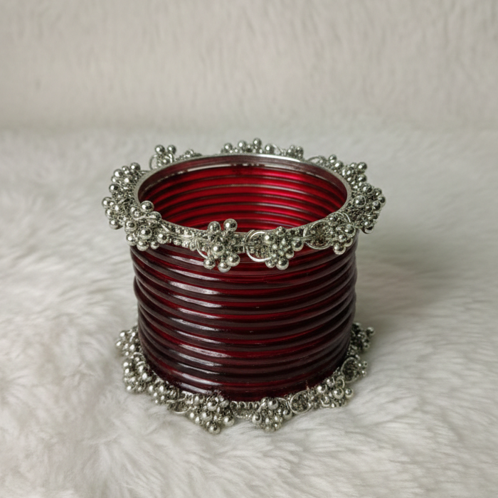 Elegant Red Metal Kada Bangle Set – Set of 6 Stylish Bangles