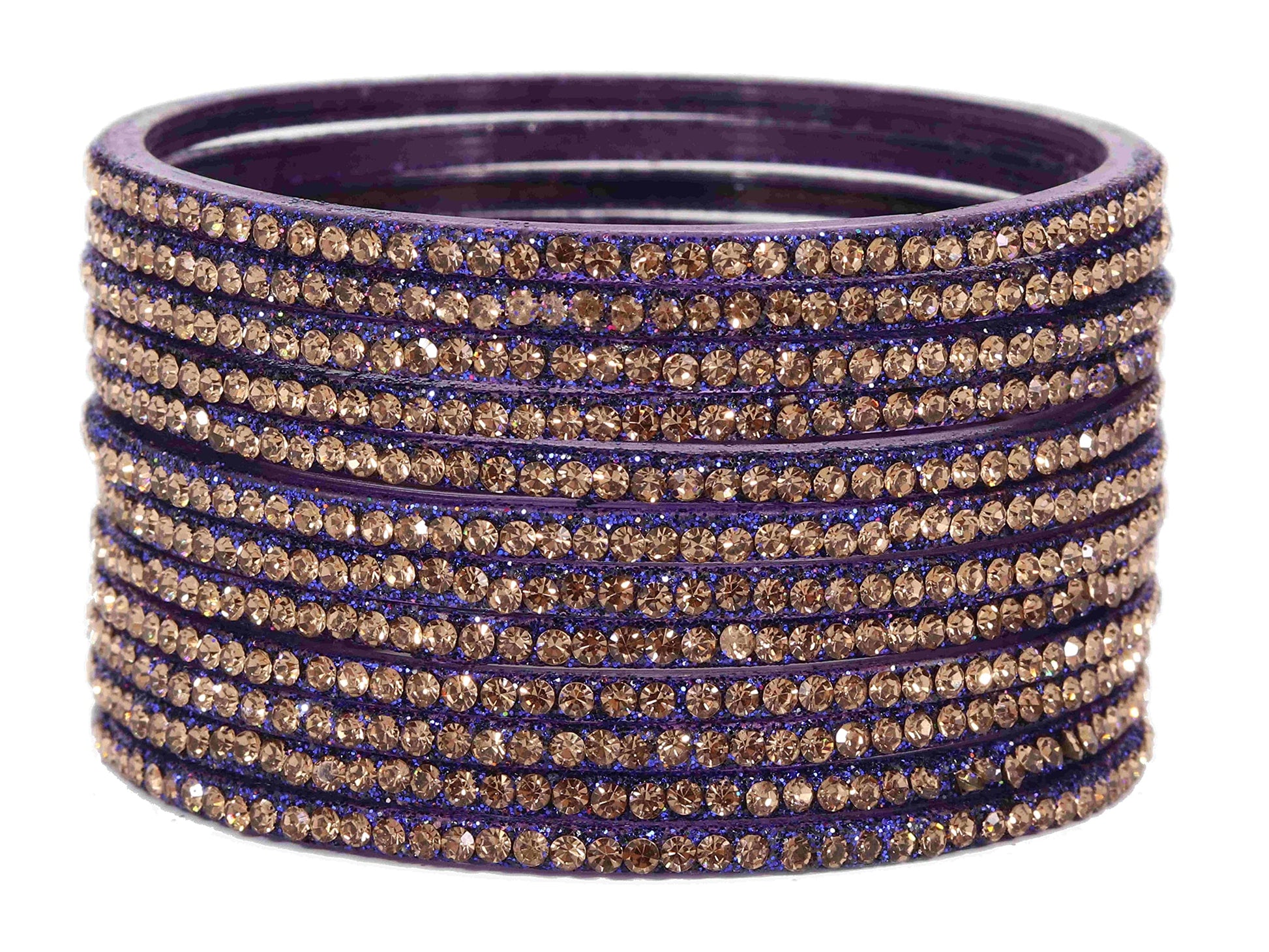 Add a touch of royal elegance to your jewellery collection with this stunning blue glass bangle set. Crafted from high-quality glass, these bangles feature a rich blue base beautifully adorned with sparkling zircon gemstones arranged in neat rows, creating a luxurious and eye-catching appeal.
