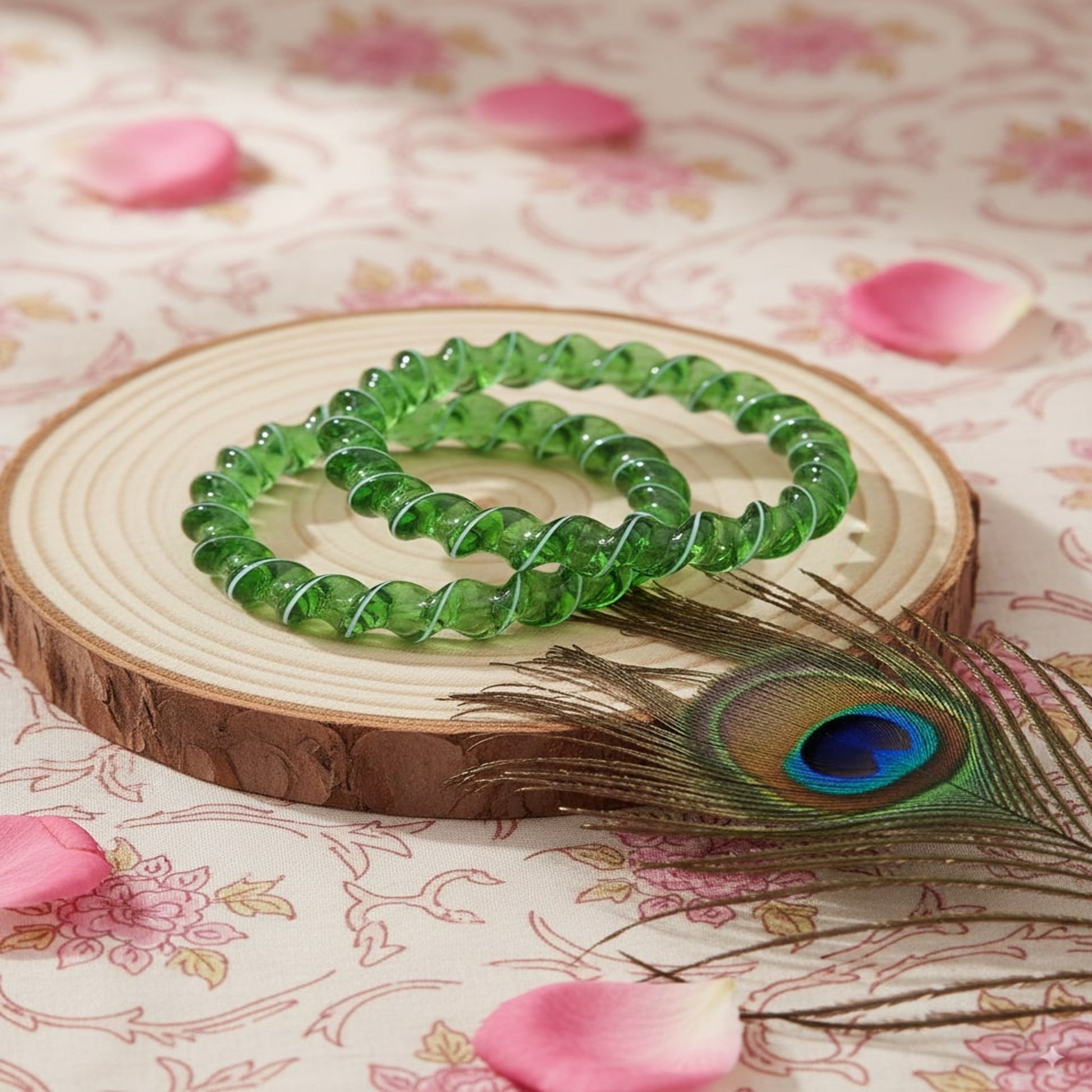 Green Spiral Glass Bangles – Set of 2 Designer Twist Pattern