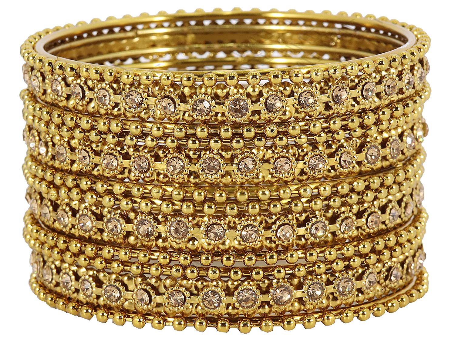 Luxury Gold Finish Golden Zircon Ballchain Bangles – Set of 12