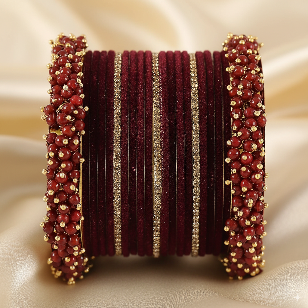 Marron Bridal Chuda – 2 Full Sets with Zircon & Kada