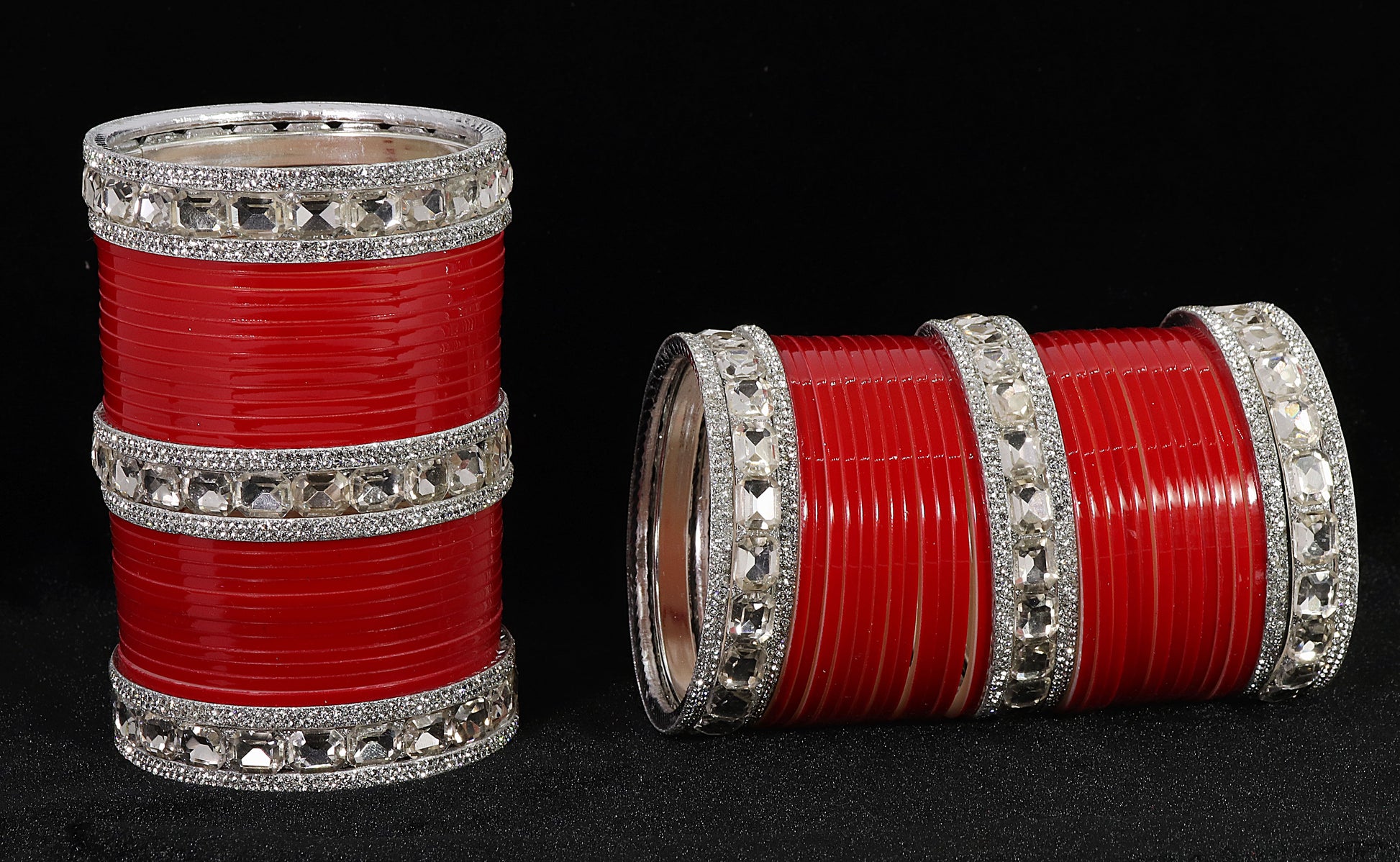 Red Acrylic Bridal Chuda – With Diamond-Cut Stone Bangles & Kada