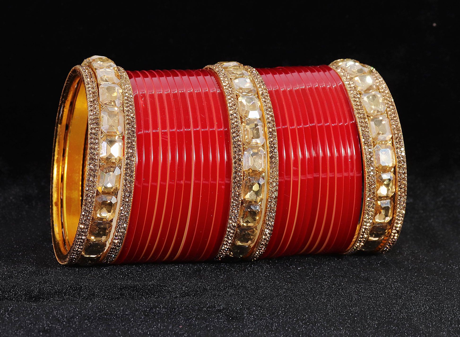 Red Acrylic Bridal Chuda – With Golden Diamond-Cut Stone Kada