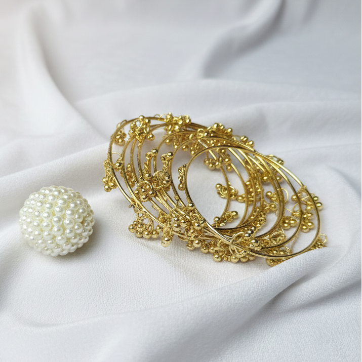 • Melodious Ghungroos: Each bangle is adorned with tiny, delicate metallic beads (Ghungroos) that create a subtle, beautiful jingling sound with every movement, bringing a festive spirit.
