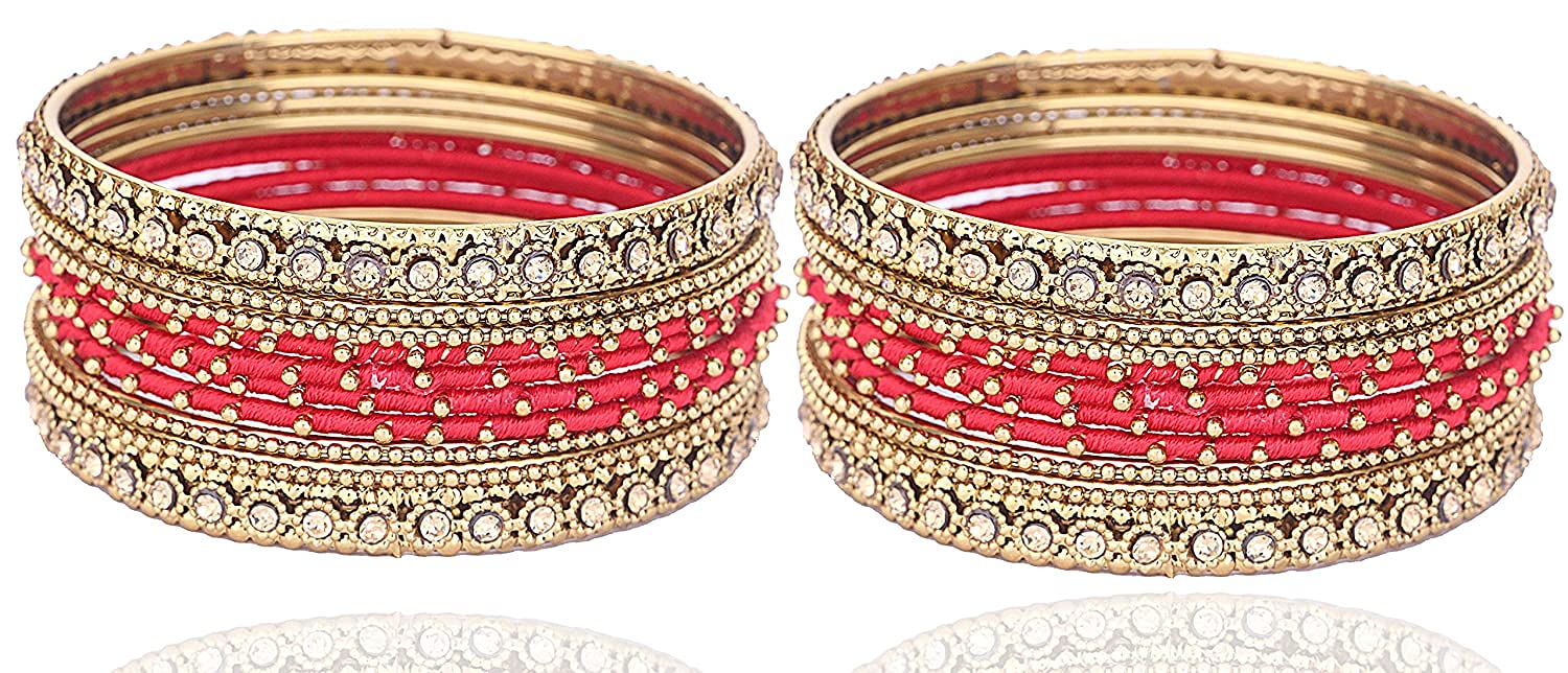 Traditional Red & Gold Silk Thread Bangles Set for Festive Wear – 20 Pieces